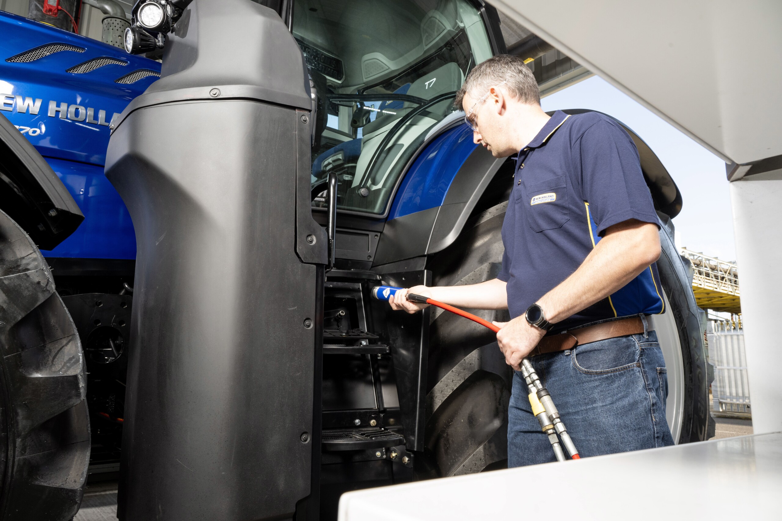 Auf der Agritechnica 2025 in Hannover stellt New Holland im November nun die nächste Entwicklungsstufe seiner Traktorenreihe vor, darunter den in der charakteristischen Blue Power-Lackierung gehaltene T7.270 Methane Power CNG. Der Traktor mit CNG-Antrieb ist in Europa ab sofort bestellbar, die ersten Auslieferungen erfolgen im Frühjahr 2026. «Der T7.270 Methane Power eignet sich ideal für den Einsatz in Biogasanlagen selbst», erklärt Darragh Mullin, Global Product Manager für die T7 LWB-Baureihe. «Er erfüllt zudem die Anforderungen grösserer Ackerbau- und Viehhaltungsbetriebe, die ganzjährig mit schwerem Anbaugerät arbeiten. Die Kombination aus CNG-Technologie und bewährten Merkmalen der T7-Baureihe bietet unseren Kunden eine ausgewogene Lösung aus niedrigen Betriebskosten, hoher Autonomie, Zuverlässigkeit und hohem Fahrerkomfort.»